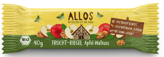 Ingrédients : raisins secs* 36%, pommes* séchées 20%, noisettes* grillées 17%, miel* 16%, noix* grillées 11%, huile de tournesol*, cannelle*